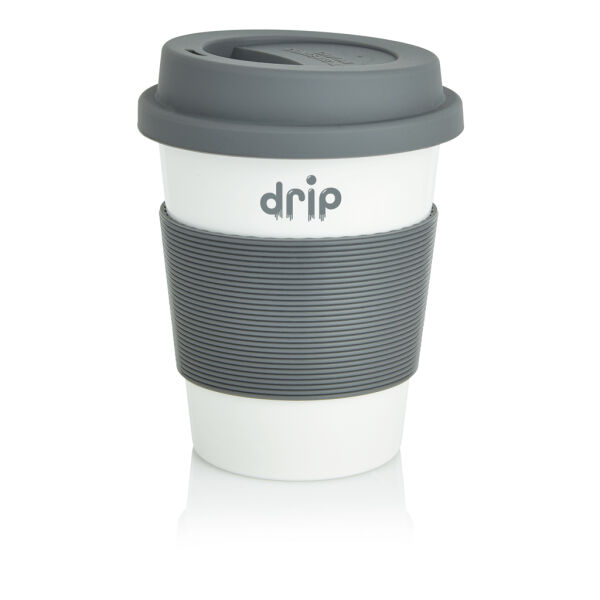 Uiterst duurzame mok met siliconen grip en deksel. Gemaakt van 100% plantaardig materiaal (PLA). BPA-vrij. Inhoud 350 ml.