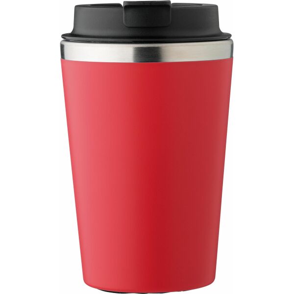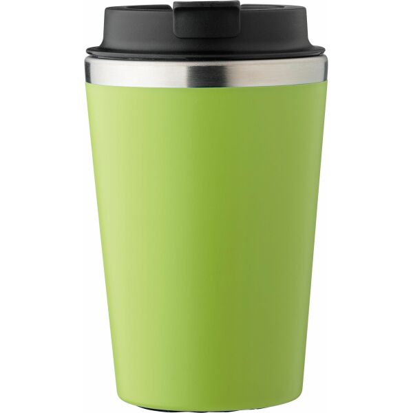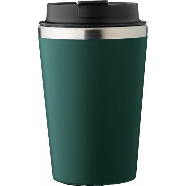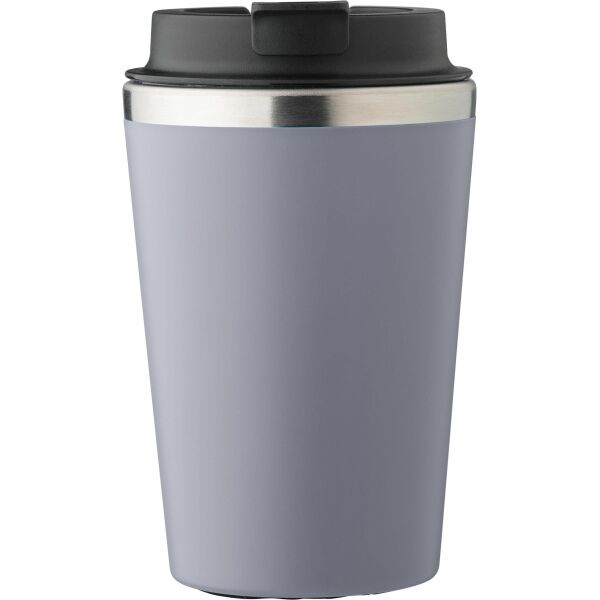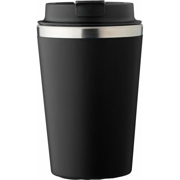 Roestvrijstalen en PP reisbeker (350 ml). Het PP-deksel heeft een siliconen sluitring met een opklapbare sluiting bovenop. Individueel verpakt in een bruine kartonnen doos.